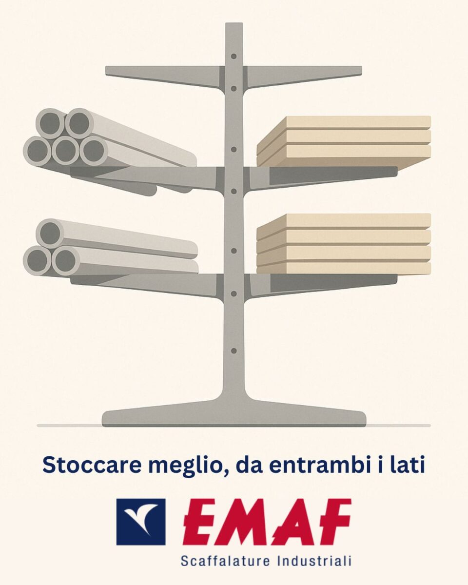 EMAF progetta, produce e installa Cantilevers certificati, calcolati sulle reali esigenze del tuo magazzino, nel rispetto delle norme tecniche più aggiornate e con un servizio tecnico interno che garantisce sicurezza, durabilità e massima efficienza.