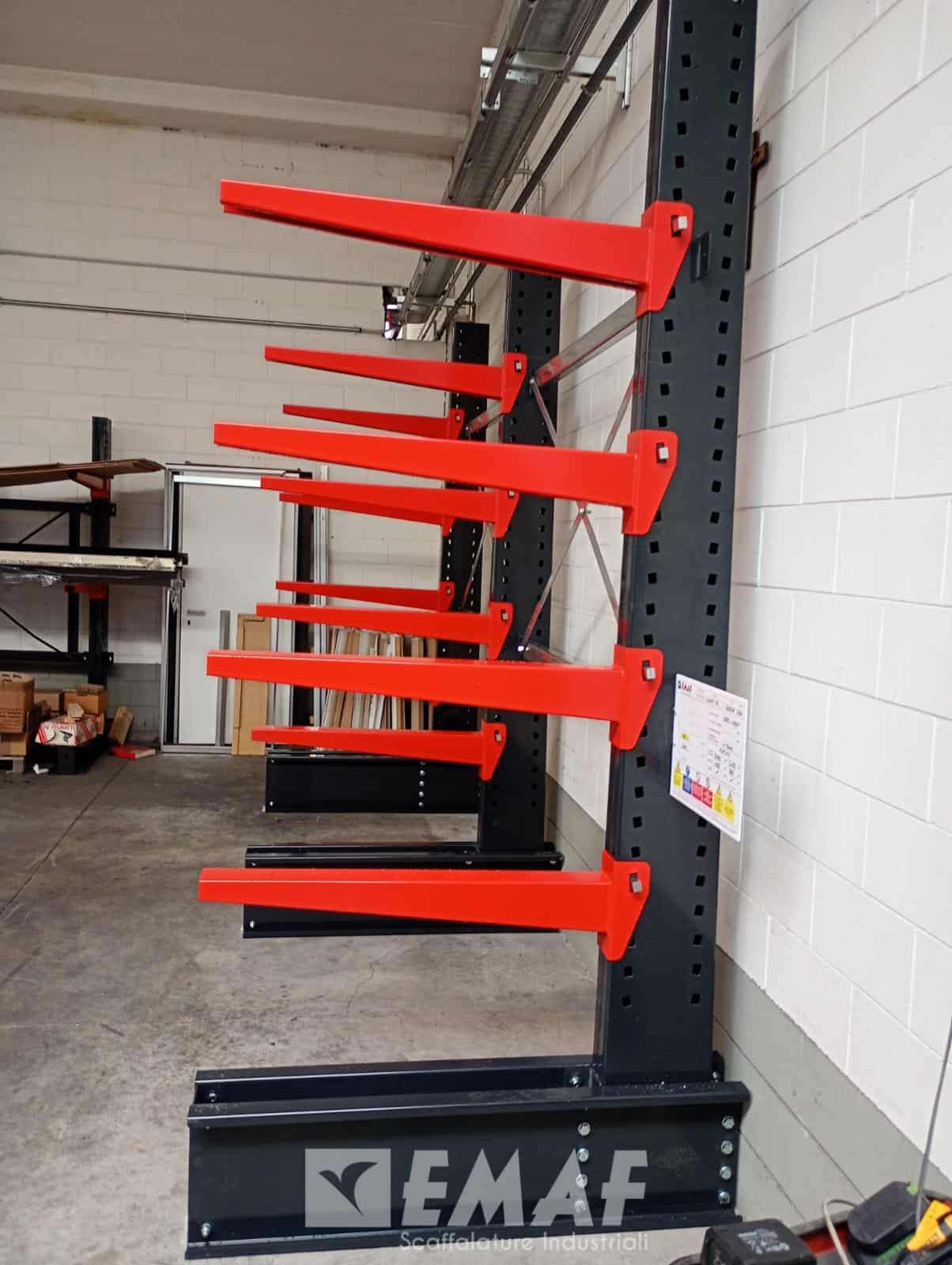 La struttura cantilever Mantegna conferma l’attenzione di Emaf per la funzionalità e l’affidabilità degli impianti dedicati allo stoccaggio di carichi lunghi, offrendo soluzioni compatte ma performanti anche in spazi contenuti.