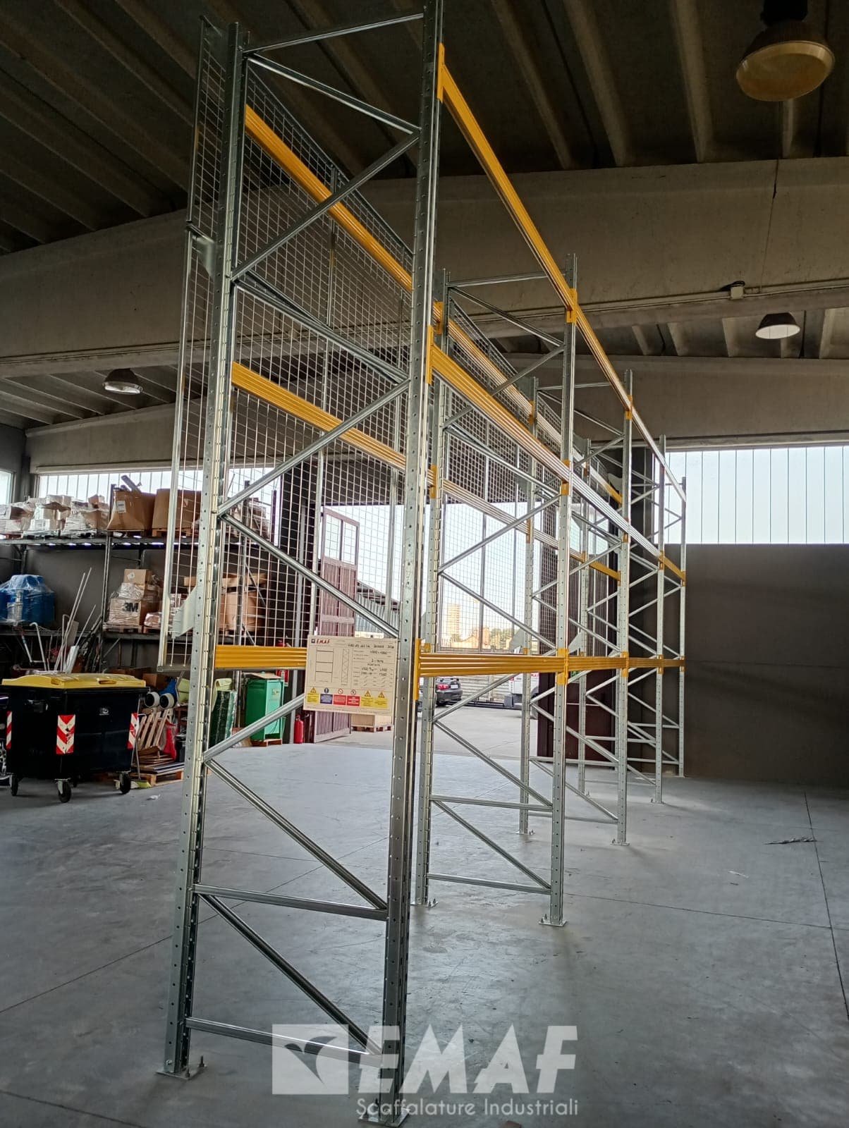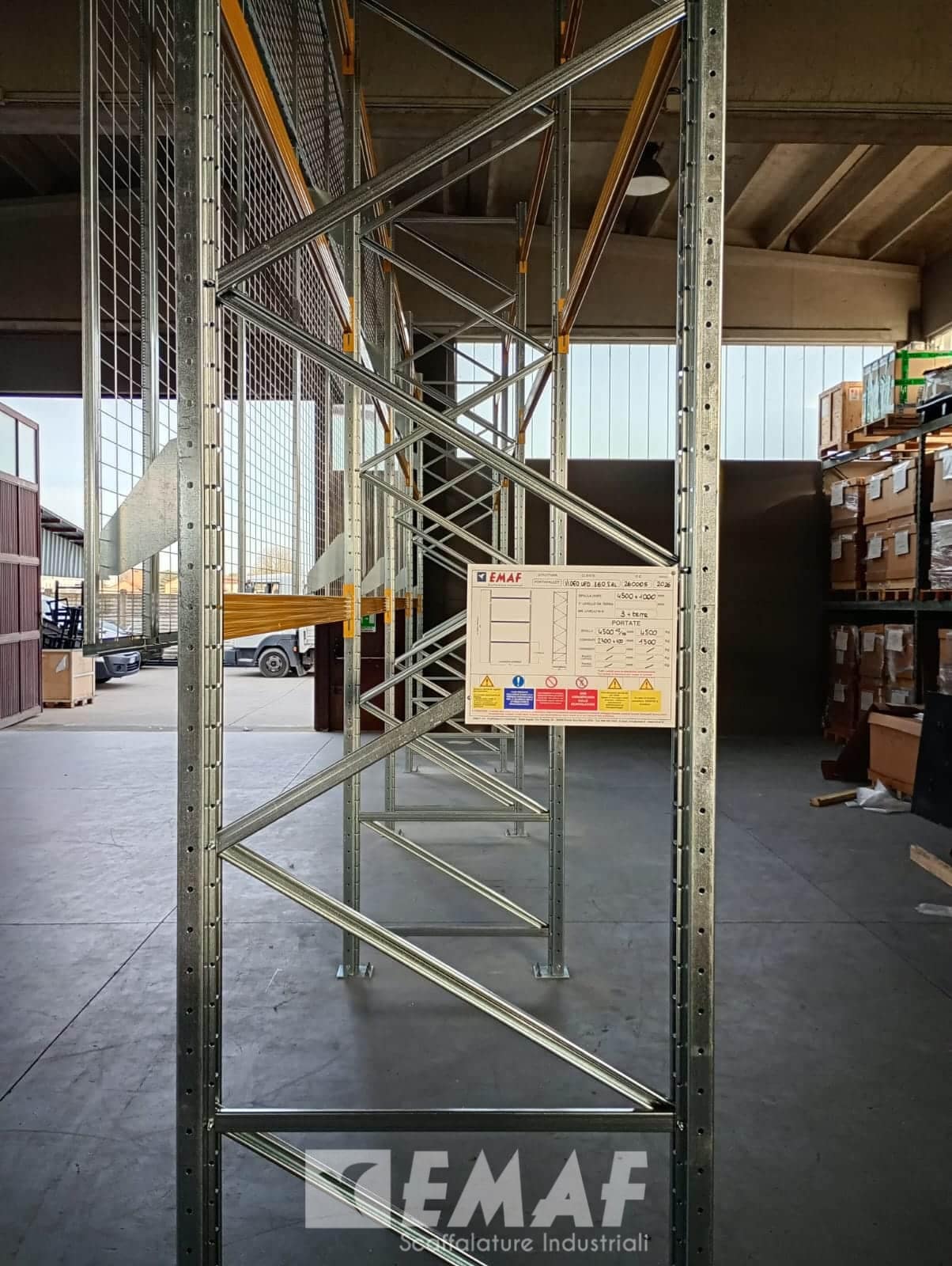 L’intervento ha previsto la realizzazione di una fila composta da cinque spalle, per un totale di quattro campate, con altezza complessiva di 4,5 metri. La configurazione è stata sviluppata su tre livelli oltre al piano terra, consentendo lo stoccaggio ordinato e sicuro di 48 pallet, ciascuno con peso unitario di 500 kg. La capacità complessiva dell’impianto risponde alle esigenze operative di un’azienda che gestisce materiali tecnologici e strutture modulari destinate a eventi e installazioni temporanee, dove organizzazione, accessibilità e sicurezza rivestono un ruolo determinante.